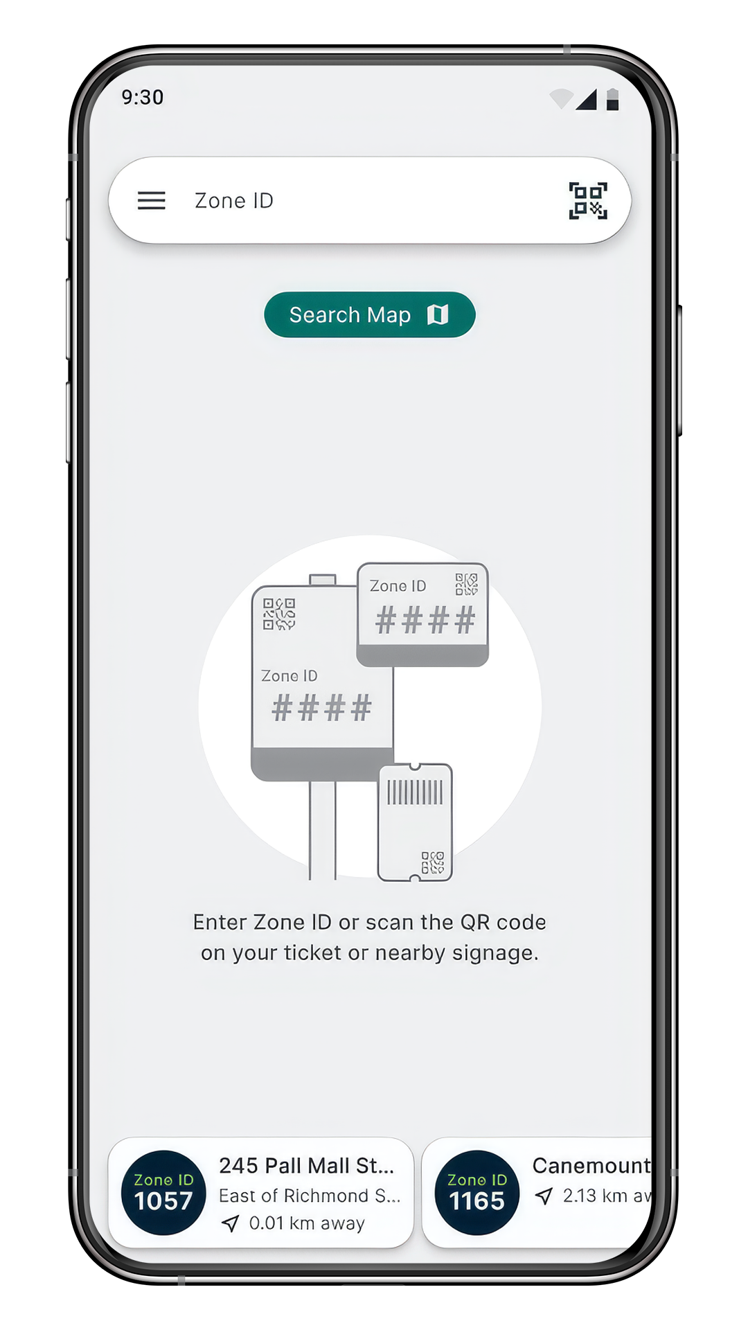 Scan a QR code or enter the Zone ID using your mobile device to pay for your parking session. It’s that easy.